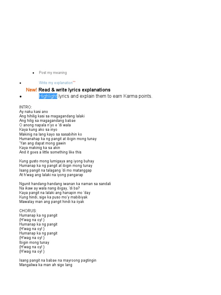 Humanap ka ng panget lyrics. Free popular animes are streaming now. Humanap Ka Ng Pangit lyrics. Kung gusto mong lumigaya ang iyong buhay.